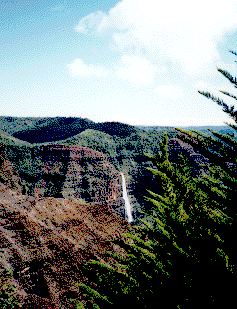 Kokee State Park is a rugged mountainous region 15 Mi. north of Kekaha on Kokee Road. Waimea Canyon, called "The Grand Canyon of the Pacific" by Mark Twain, can be viewed from many lookout points along the highway. Waimea canyon road requires cautious driving, but offers superb views of the canyon, waterfalls, and Nihau Island. Hiking is possible from many trailheads along the road.